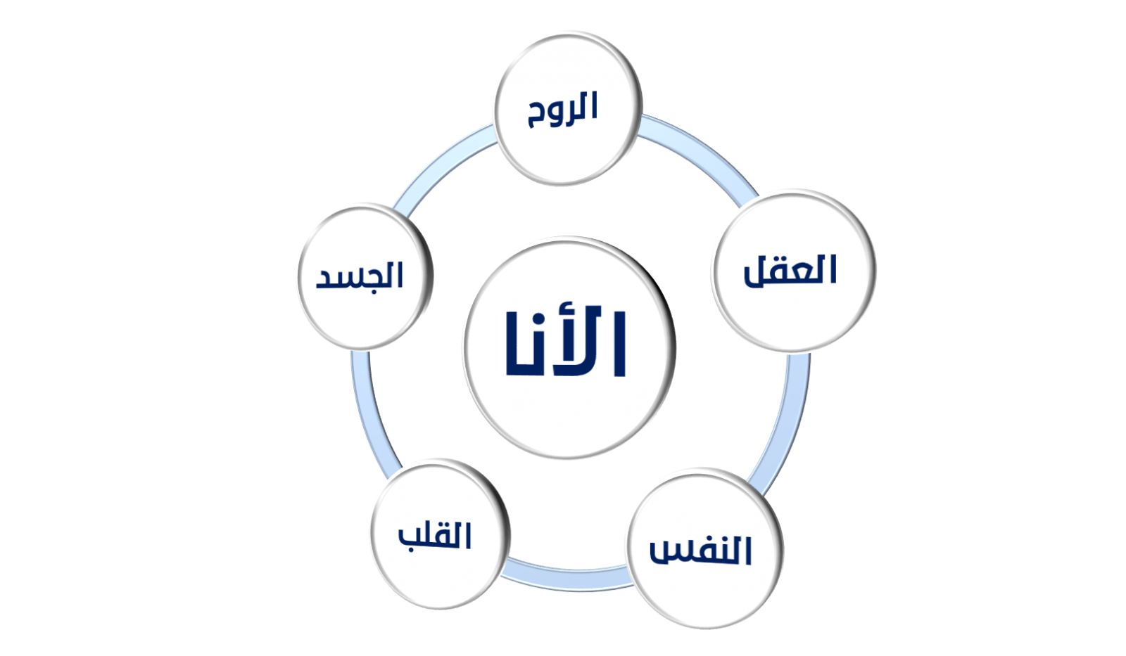 وكمحاولة لفهم الذات البشرية رأيتها تتمثل في (أنا) تشكِّل نواةً تتوسط خماسية مكونة من: (الجسد، والروح، والقلب، والعقل، والنفس)، هذه الأشياء الستة هي أنت!